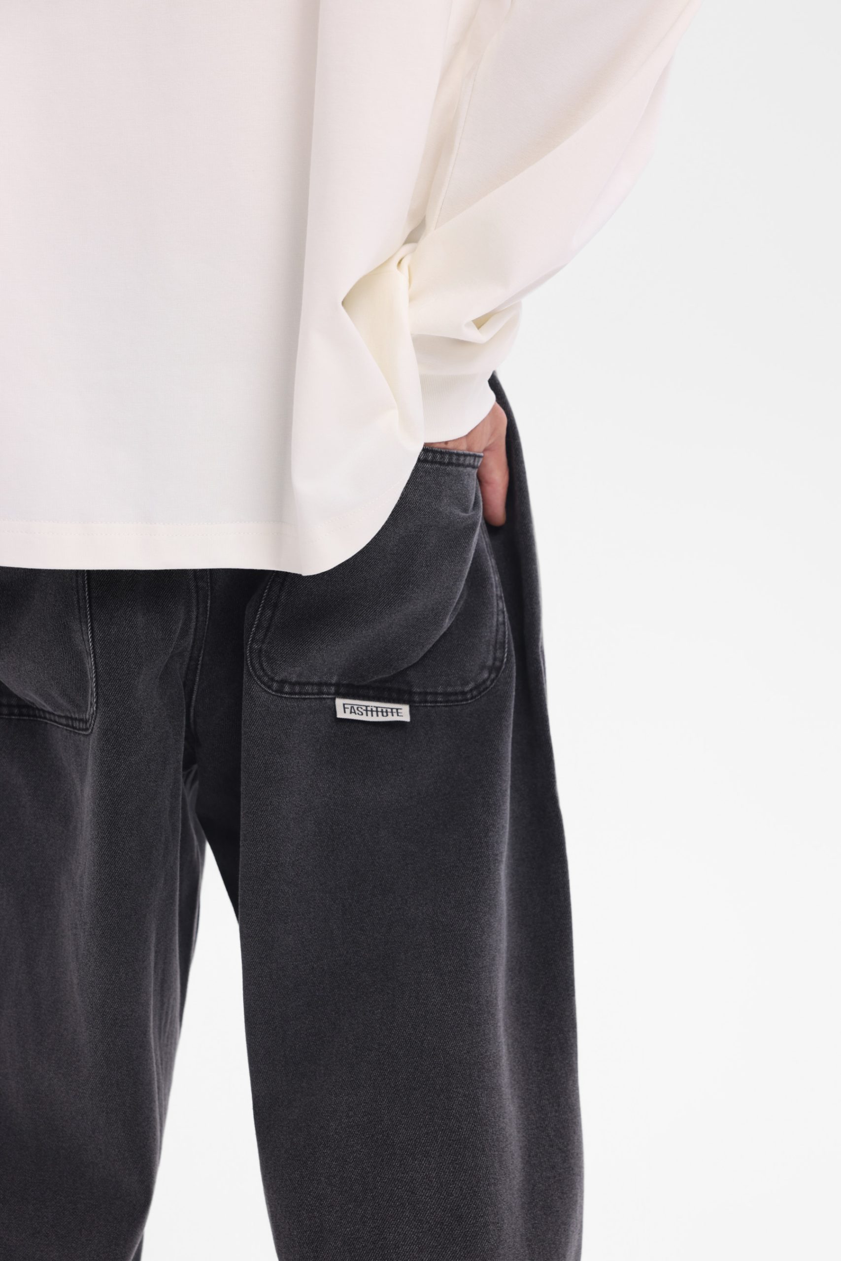 炭黑与浅灰双色基底,自带岁月摩挲的做旧质感,像从复古仓库挖出的宝藏;独特车线分割,打破常规牛仔的单调,为裤型注入建筑感,行走间流淌不羁张力。宽松直筒剪裁,兼容滑板随性与 Cityboy 松弛,双侧口袋延续工装基因,却用明线设计玩出层次。