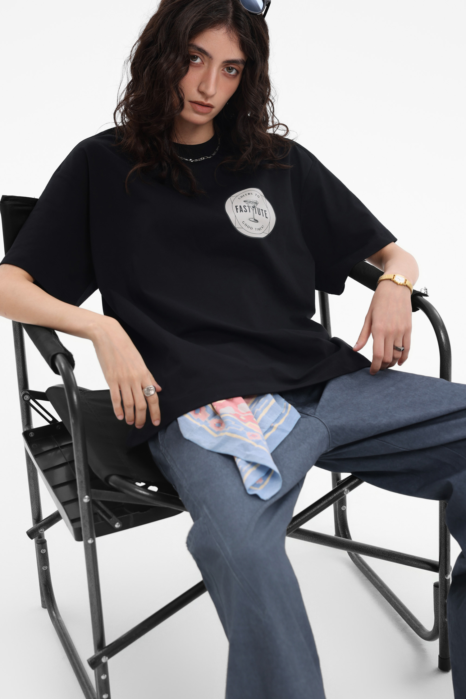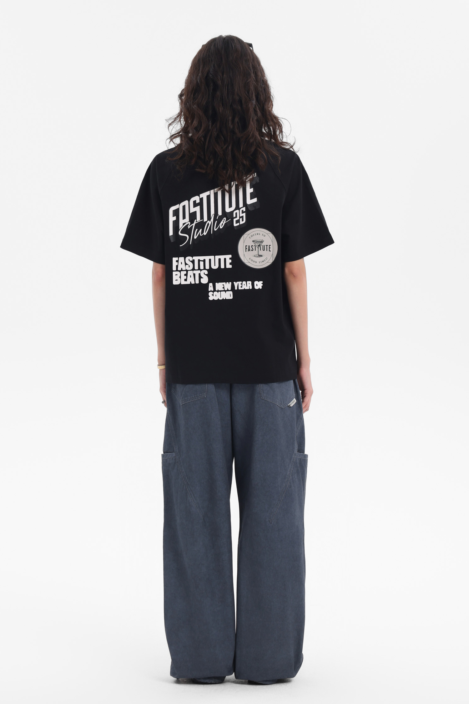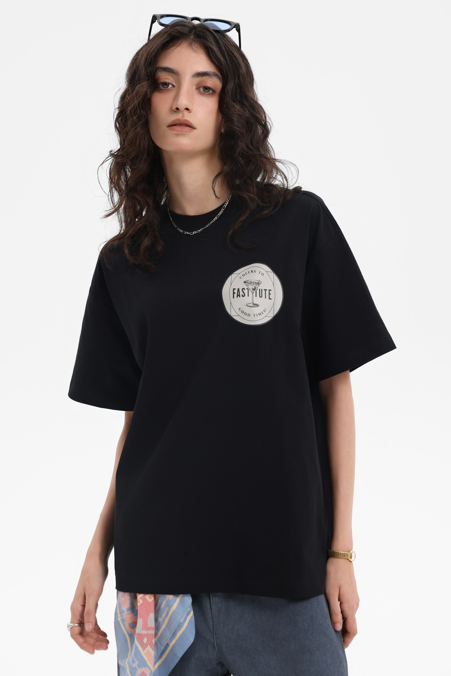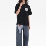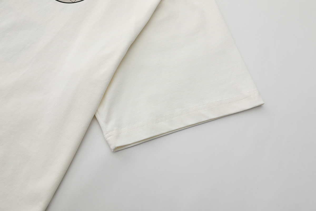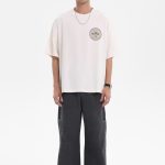 The off-white one has a circular chest print with hidden charm; back letters & patterns collide, like designs stolen from old record covers. Washed distressing softens formality, suiting Cityboy casualness. The black one (if available) uses dark patterns to show vintage tension, “effortless chic” in simplicity. Loose cuts fit diverse styles – alone, they’re street cool; layered, they add texture. Paired with work pants or wide-legs, they boost retro vibes instantly. In crowds, wear a tee to show “old-school new-wave” flair, welding vintage relaxation into your look!