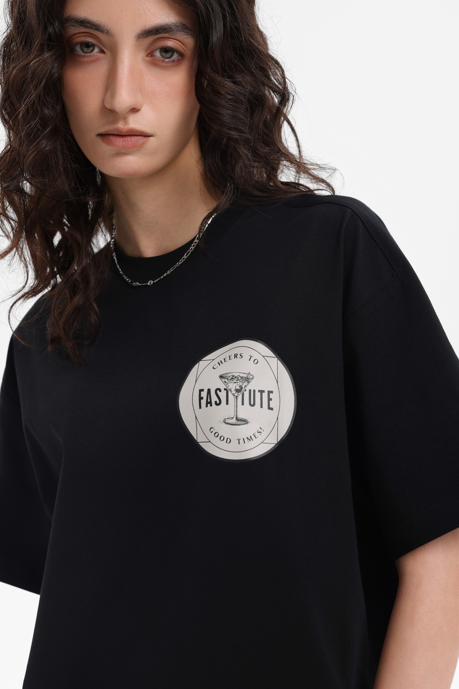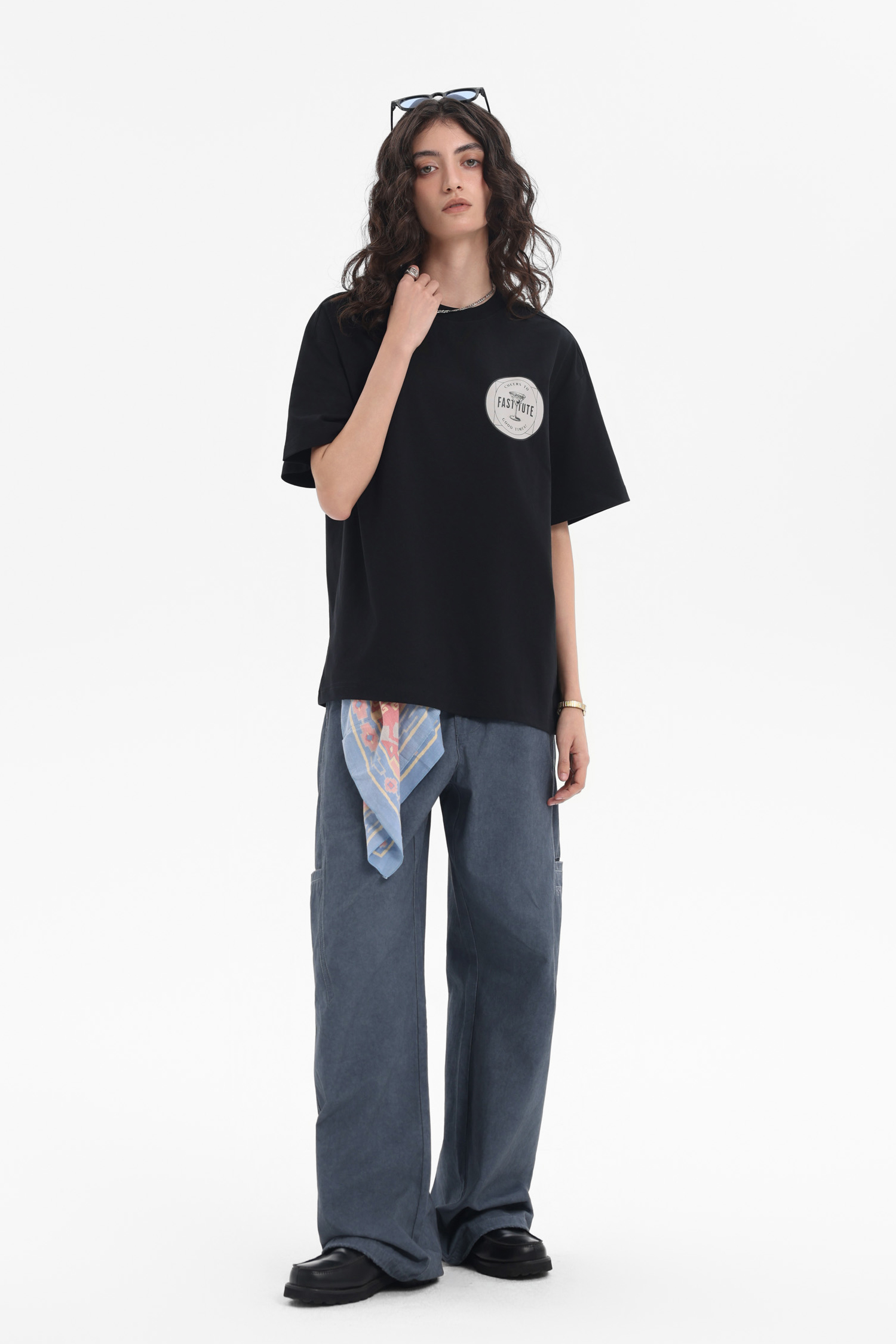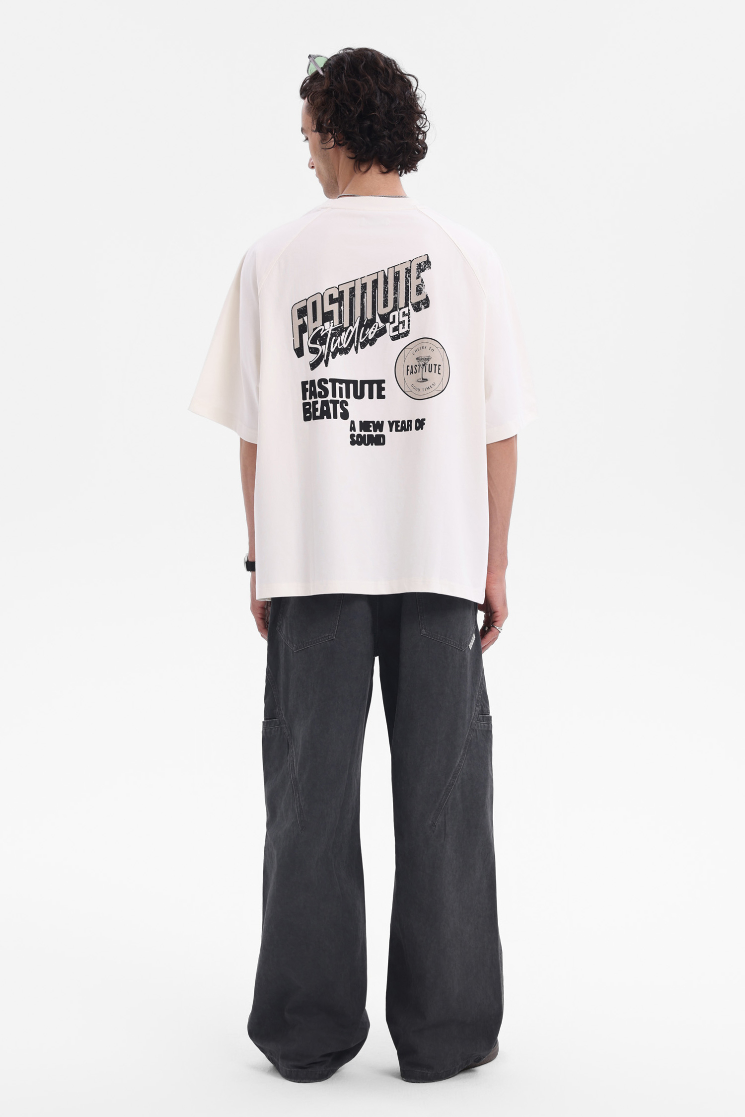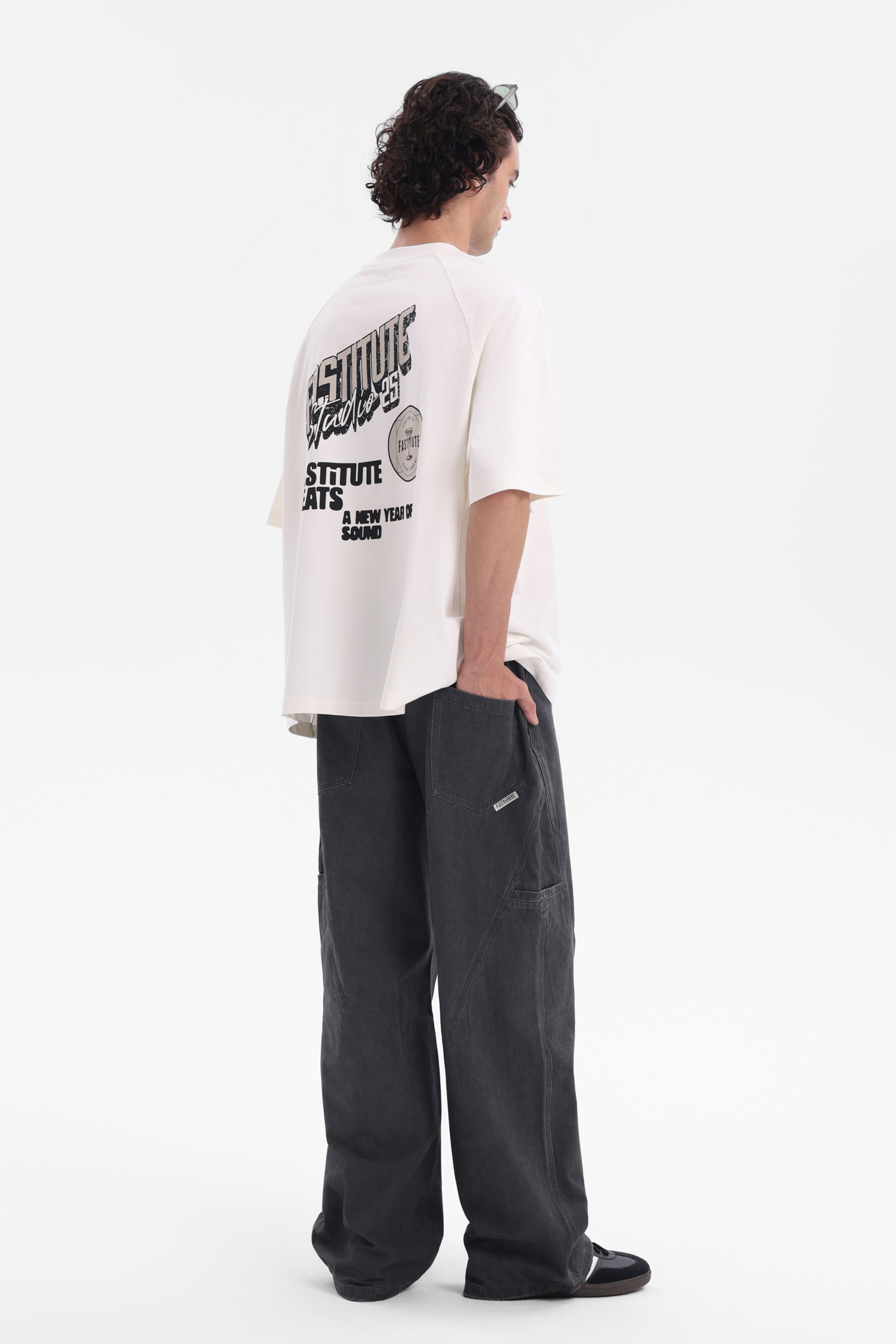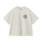 米白款胸前圆形印花暗藏玄机,背后字母与图案碰撞,像从旧唱片封面偷来的设计,水洗做旧感弱化规整,适配 Cityboy 随性;黑色款(若有)则以暗纹勾勒复古张力,简约中藏着 “不费力时髦”。宽松剪裁兼容多元风格,单穿是街头酷盖,叠穿当层次感神器,和工装裤、阔腿裤组 CP,瞬间拉满复古氛围,让你在人潮里,凭一件 T 穿出 “老派新潮” 的独特腔调,把复古松弛感焊在穿搭里~