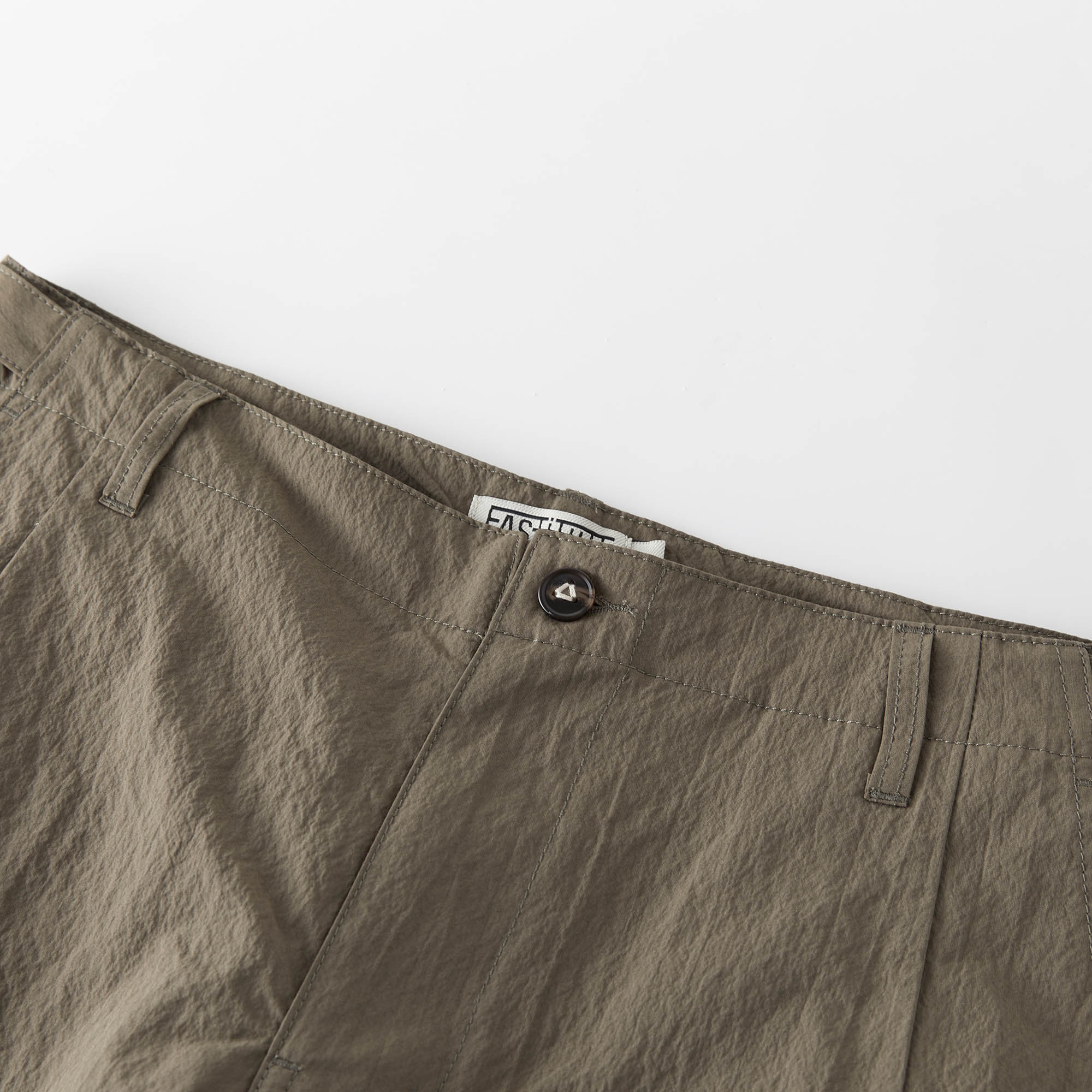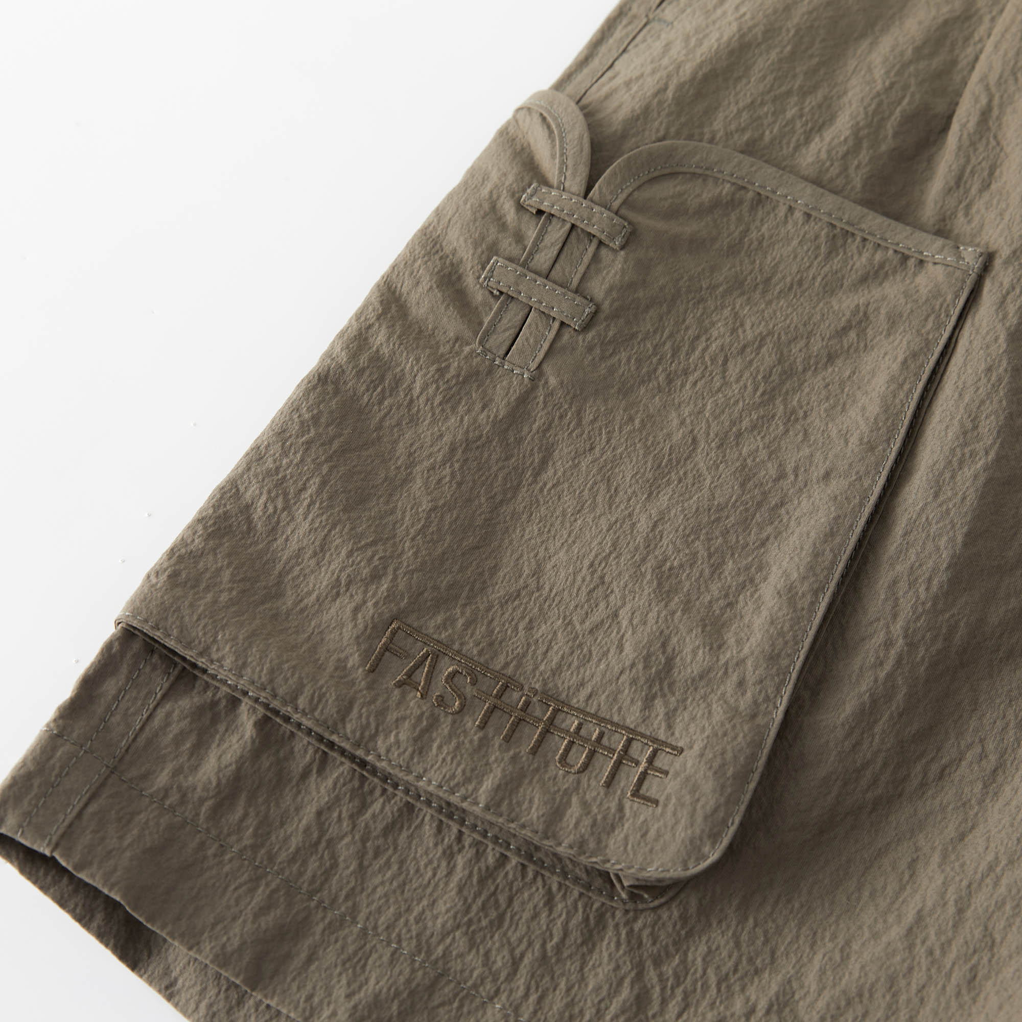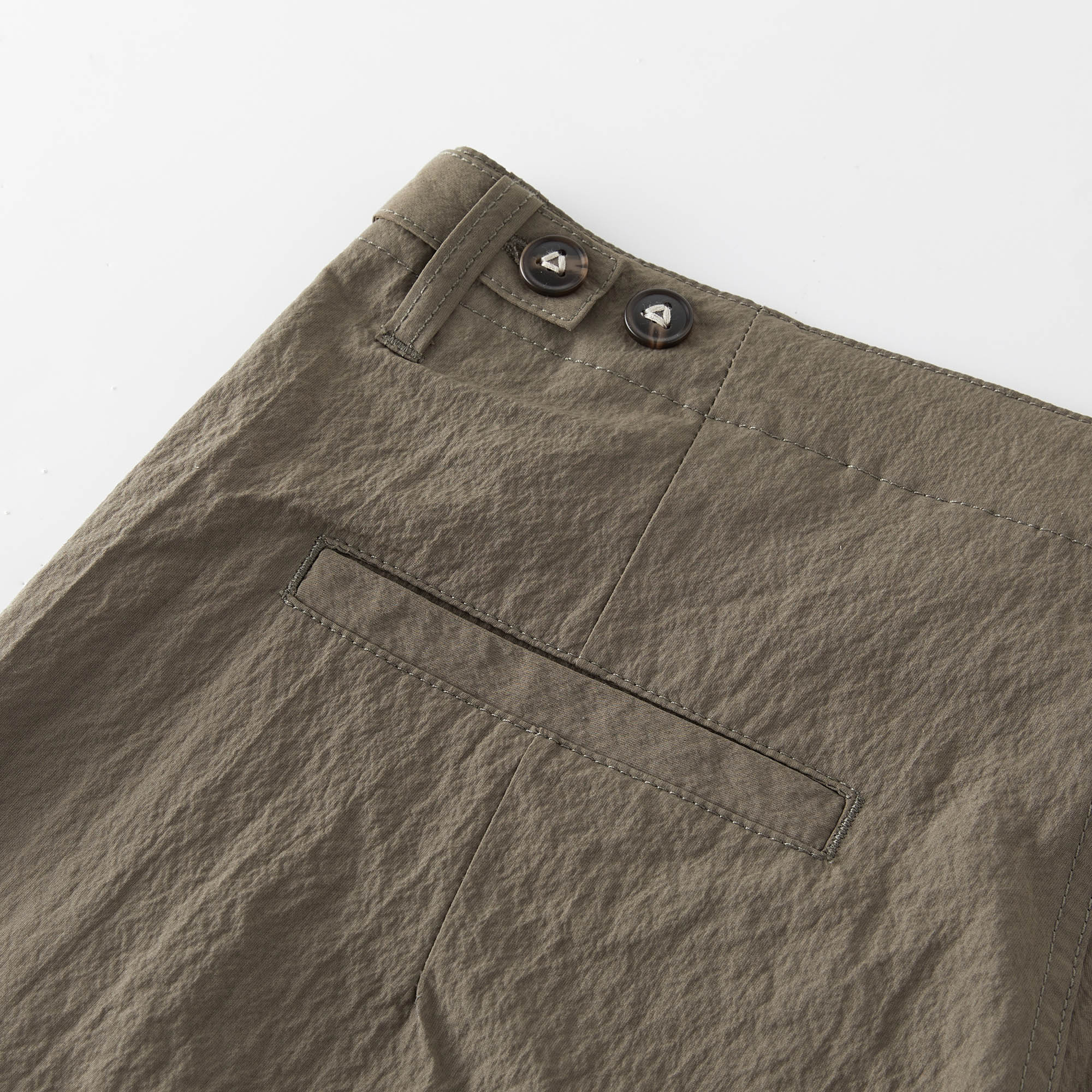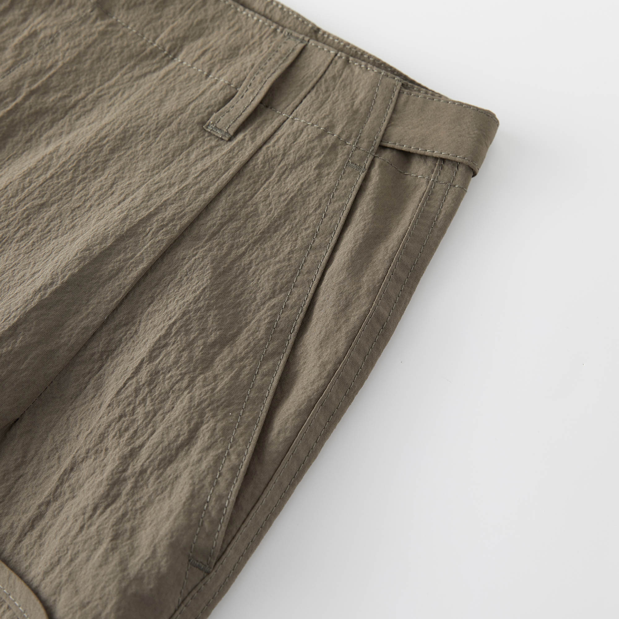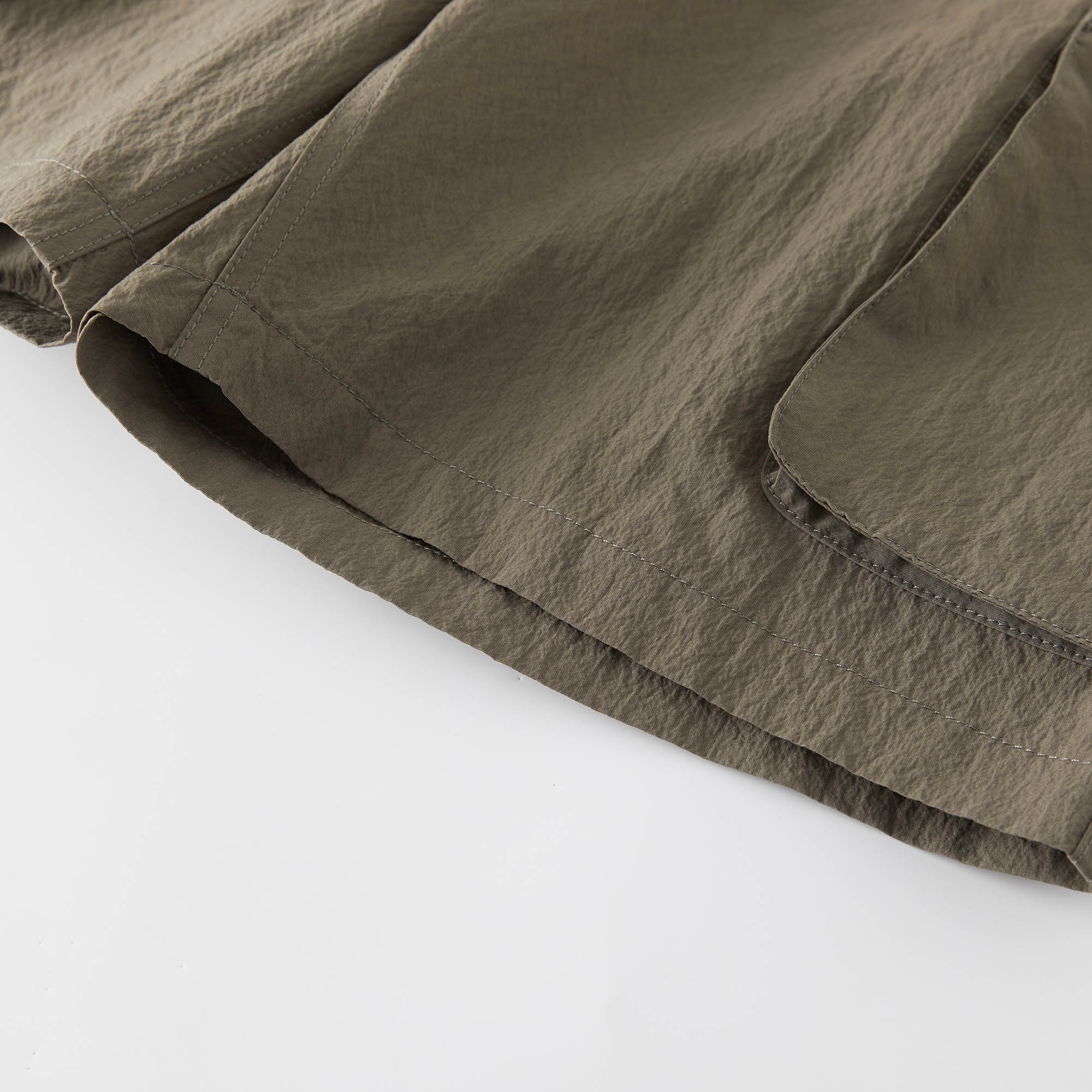 This khaki utility-style short is definitely the new favorite of street fashion. With a sharp cut, it outlines a casual and unrestrained silhouette, and every line expresses a yearning for freedom. The large and practical pocket design not only reflects functionality but is also a classic symbol of the utility style, highlighting a unique sense of coolness and practicality.