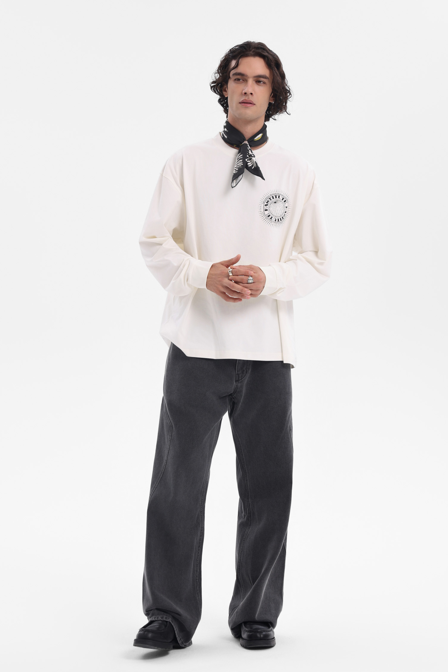 复古印花长袖 T,拿捏松弛潮流感