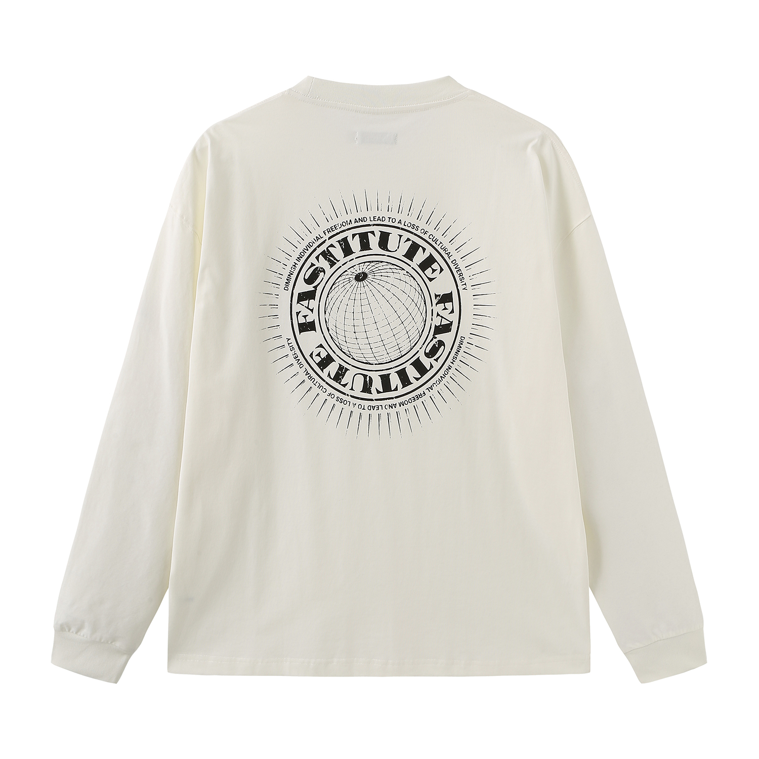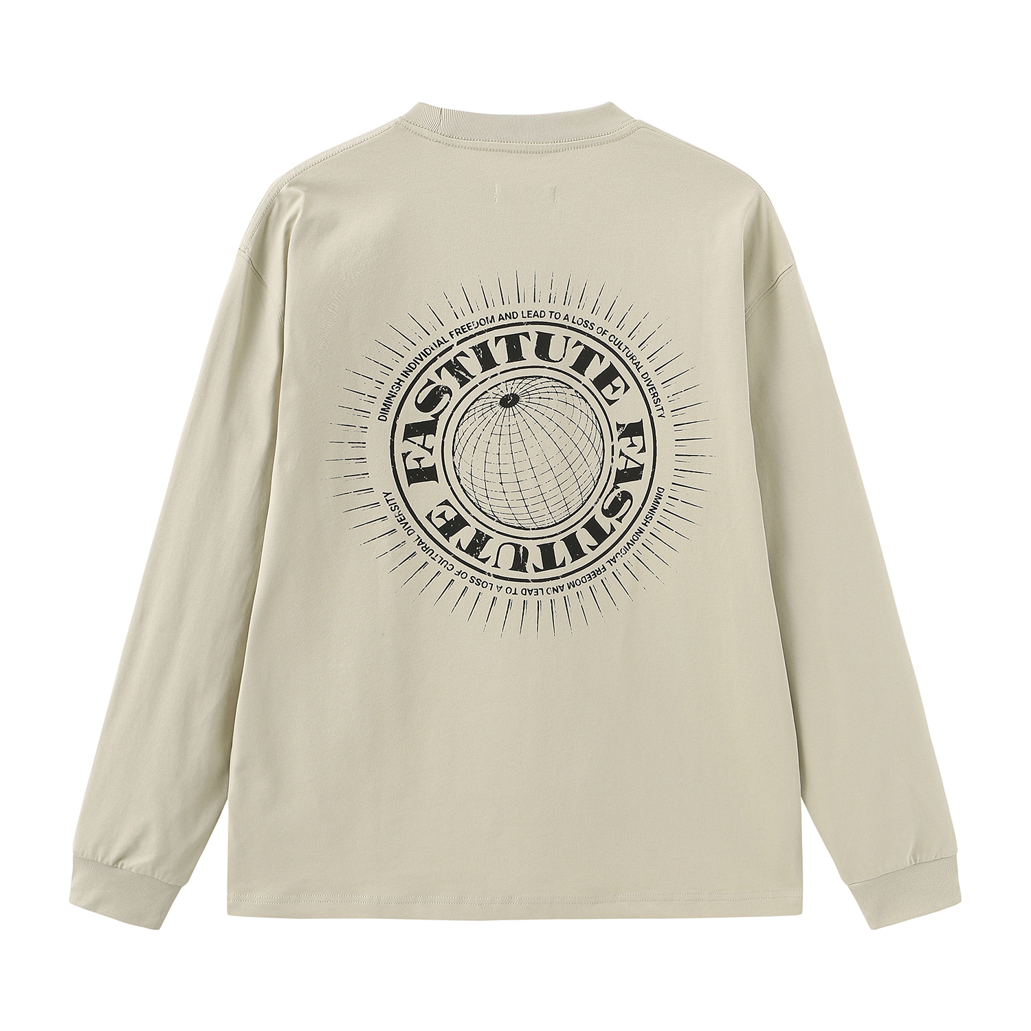 When vintage elements blend into basic long – sleeves, these two printed tees are seizing the outfit spotlight with a “vintage – reimagined” stance. The sand – colored one has a built – in distressed filter; the radial vintage prints on the chest and back seem 拓印 from old record covers, with ribbed neckline and cuffs echoing details. The white one (if available) uses a pure base to highlight print tension, weakening complexity but showing more fashion ambition. Slightly loose cut fits diverse styles. Worn alone, the print is an eye – catching anchor; layered, it becomes a layered Easter egg. Pair with work pants for vintage mixing or hoodies for layering. One tee lets you wear the unique flair of “old print, new relaxation” in crowds, welding vintage romance into daily outfits~
