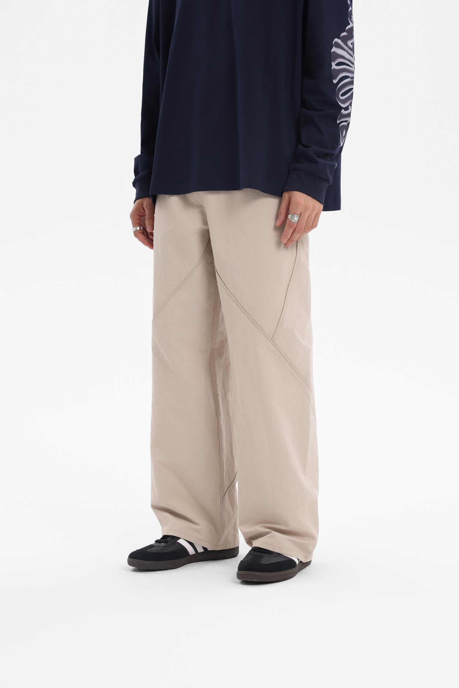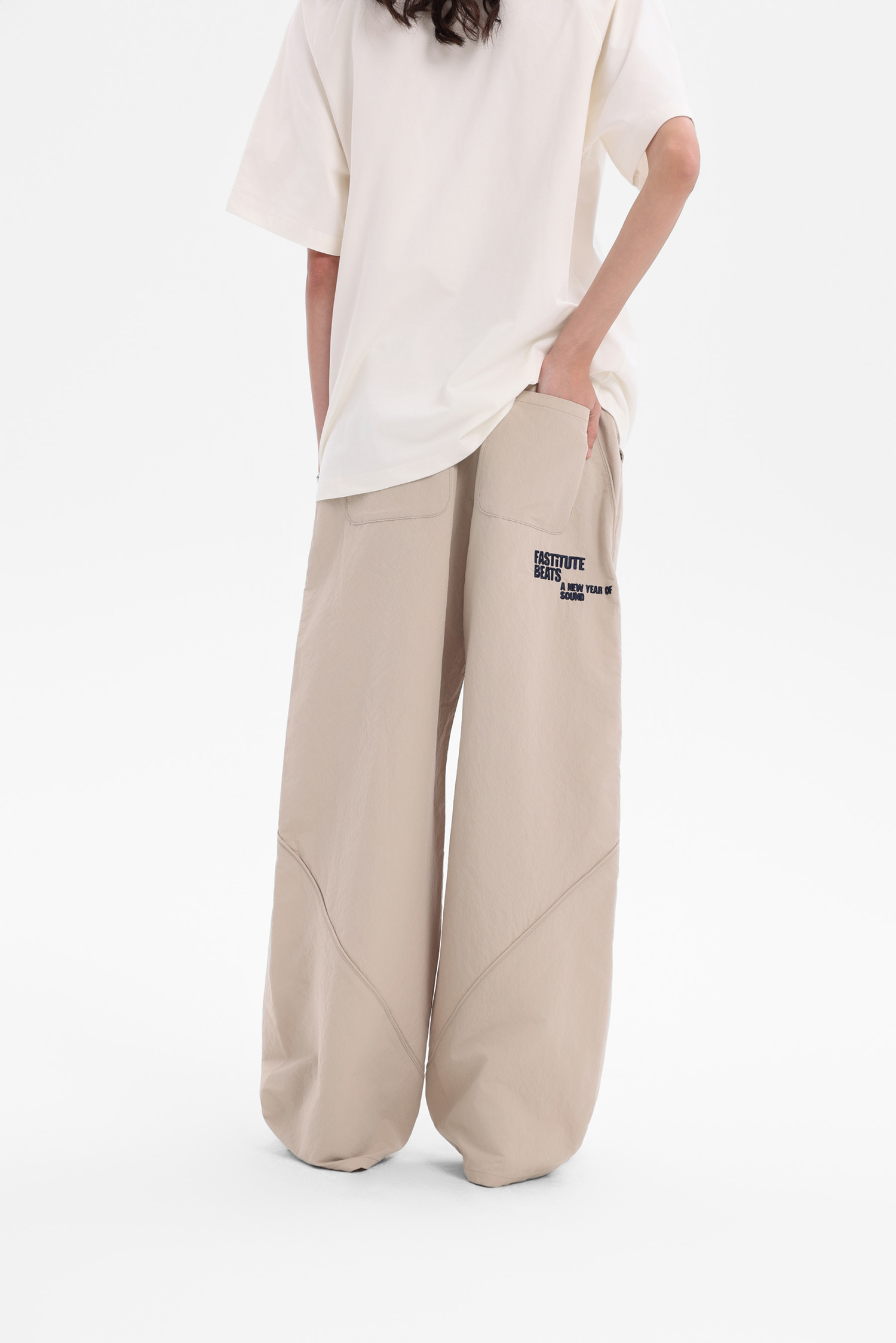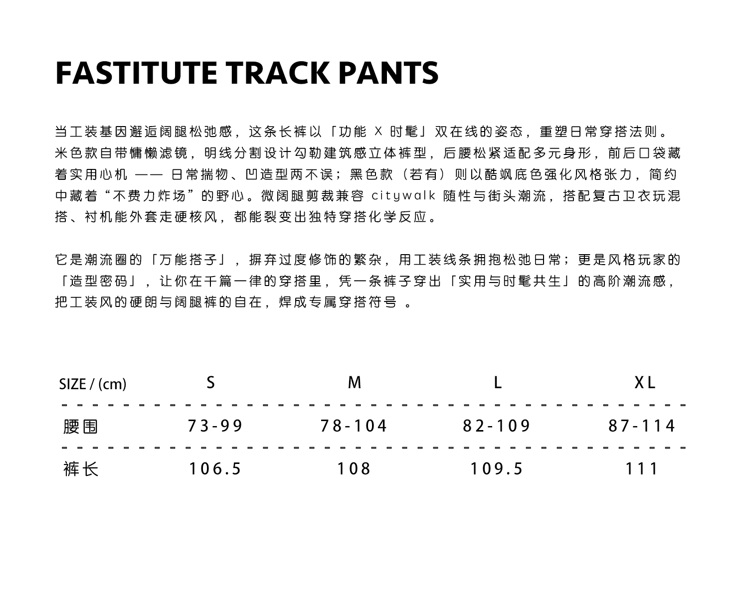 米色款自带慵懒滤镜,明线分割设计勾勒建筑感立体裤型,后腰松紧适配多元身形,前后口袋藏着实用心机 —— 日常揣物、凹造型两不误;黑色款(若有)则以酷飒底色强化风格张力,简约中藏着 “不费力炸场” 的野心。微阔腿剪裁兼容 citywalk 随性与街头潮流,搭配复古卫衣玩混搭、衬机能外套走硬核风,都能裂变出独特穿搭化学反应。