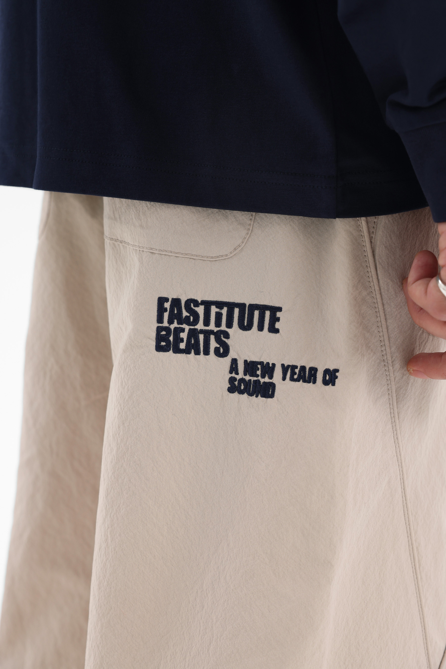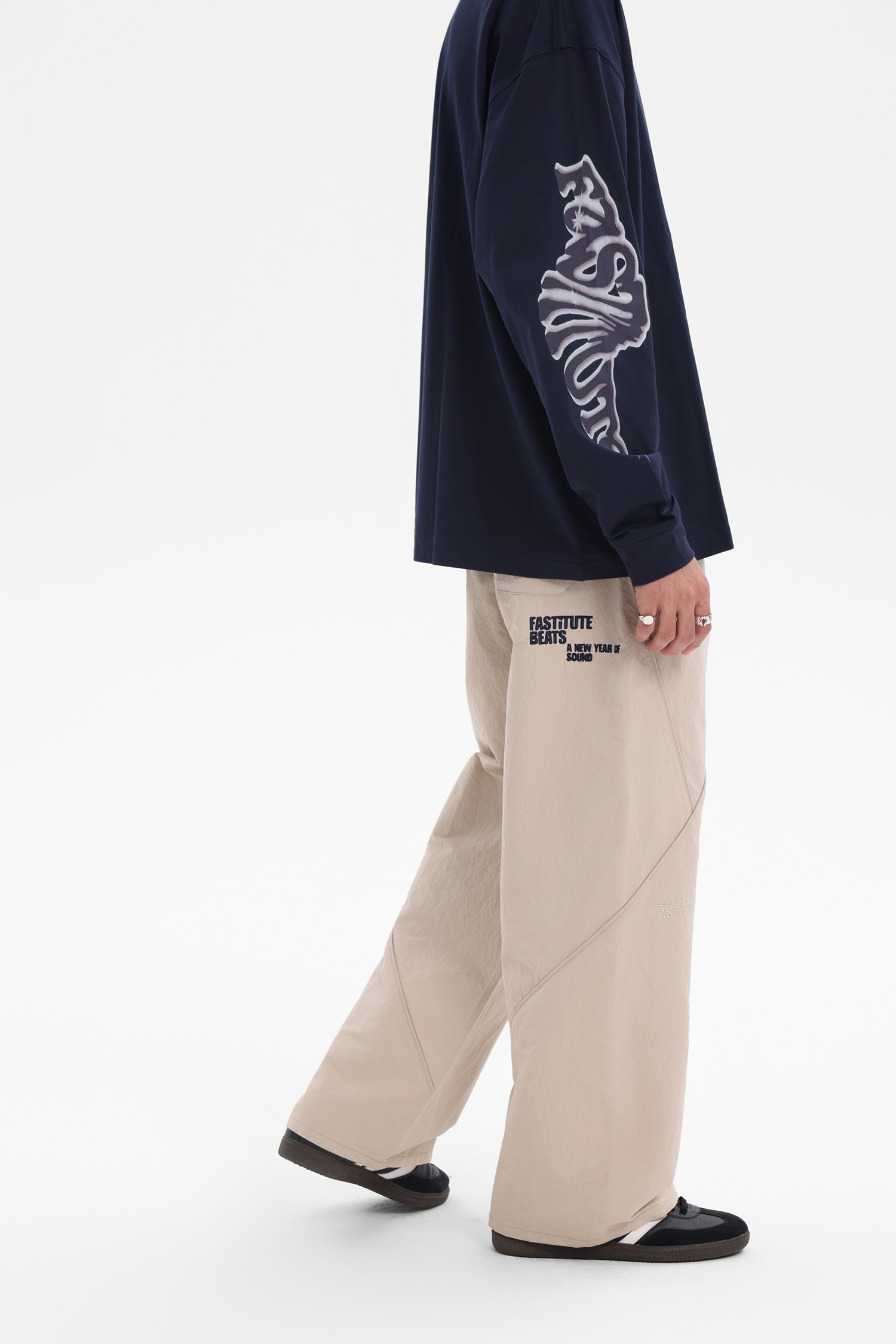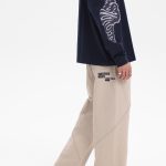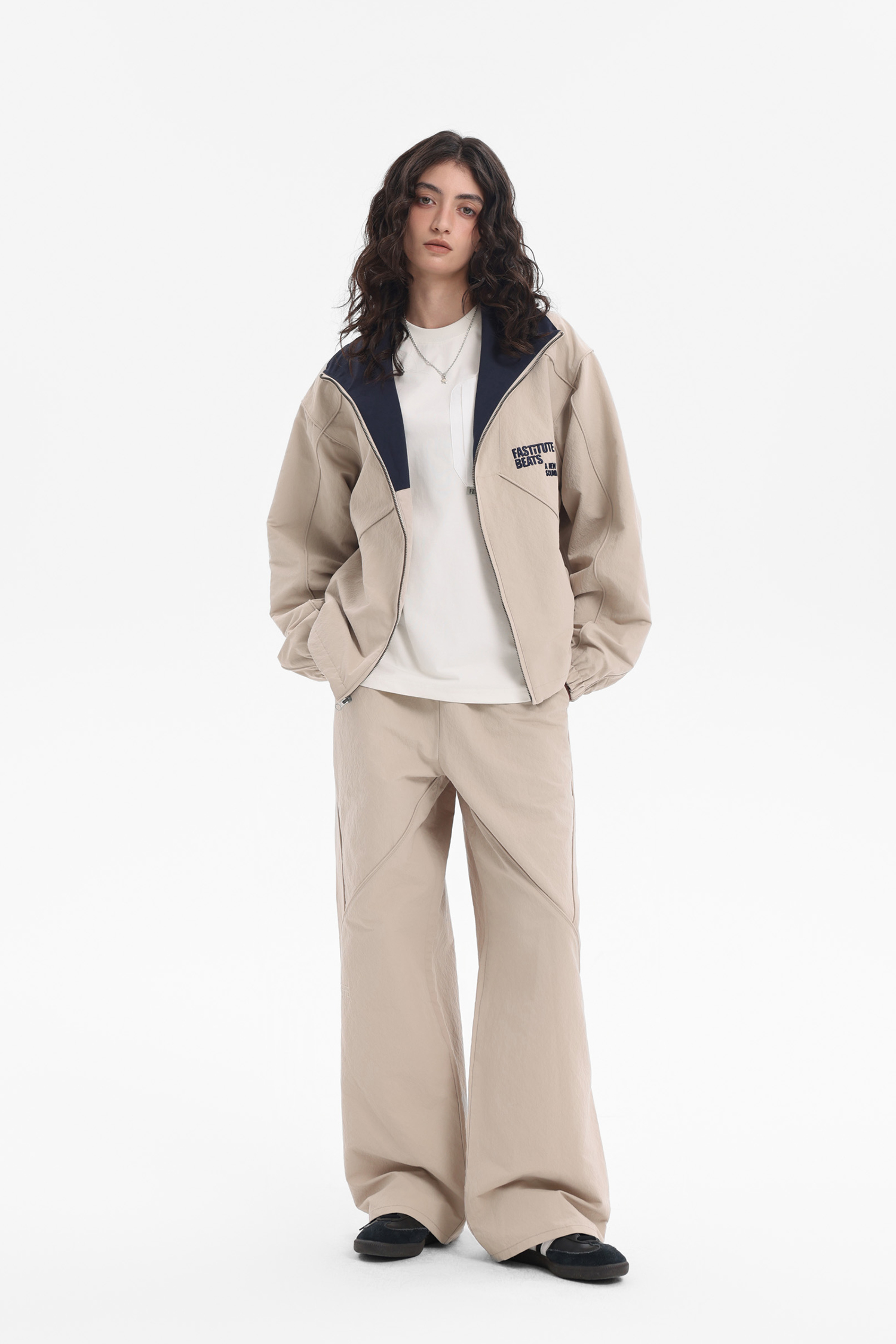 米色款自带慵懒滤镜,明线分割设计勾勒建筑感立体裤型,后腰松紧适配多元身形,前后口袋藏着实用心机 —— 日常揣物、凹造型两不误;黑色款(若有)则以酷飒底色强化风格张力,简约中藏着 “不费力炸场” 的野心。微阔腿剪裁兼容 citywalk 随性与街头潮流,搭配复古卫衣玩混搭、衬机能外套走硬核风,都能裂变出独特穿搭化学反应。