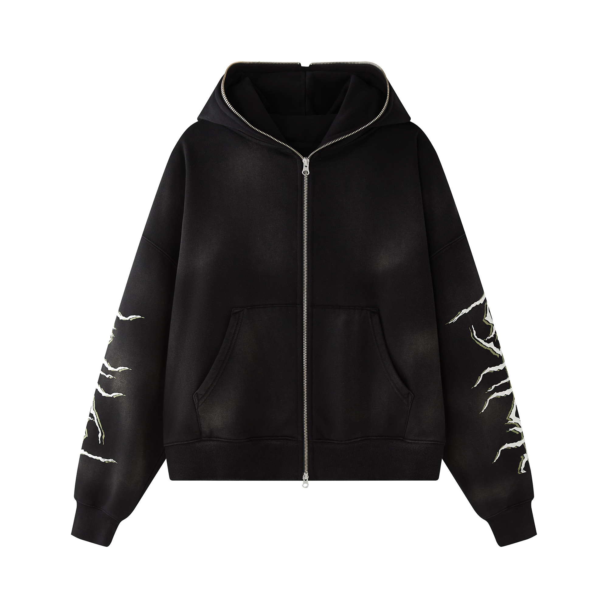 An essential item for street fashion lovers! This zip – up hoodie features unique details. The special print is like artistic strokes, casual yet eye – catching. Made of comfortable material, it allows for unrestricted movement, helping you embrace a new trendy look.